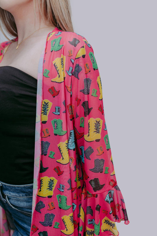 Rollin with the Flow Mesh Kimono - Hot Pink/Cowgirl