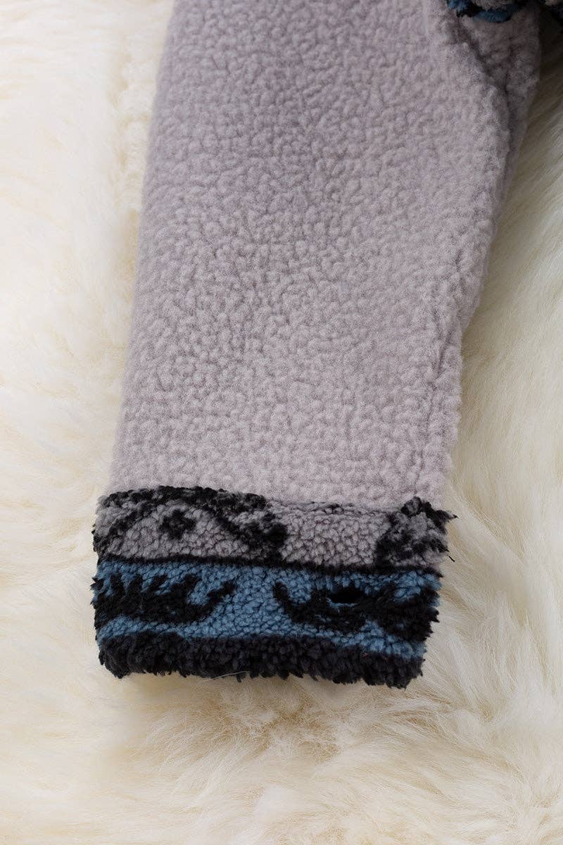 Black geometric sherpa shacket with gray